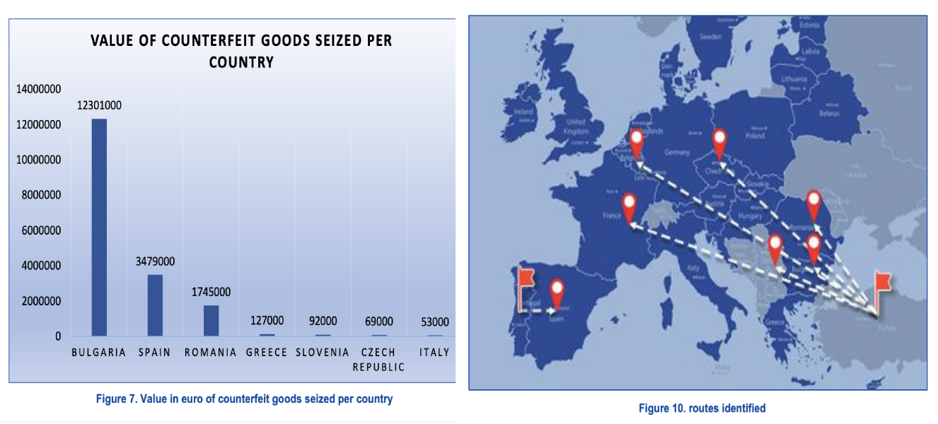 Of >1 million products seized, over 60% originated from Turkey (29% China)