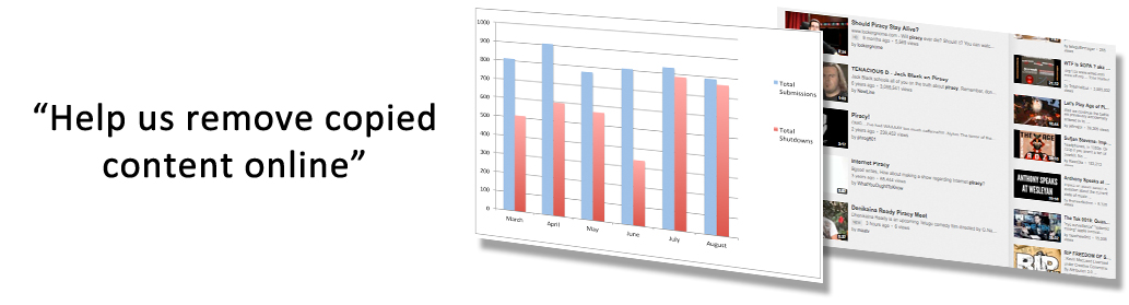 We scour video sharing sites, including Youtube, and P2P file sharing sites and manage the enforcement programs if required. Digital finger printing is used if the project scope and volume of matches requires. However, a research-based approach can often be more cost effective for removing the high visibility links in priority countries or platforms.